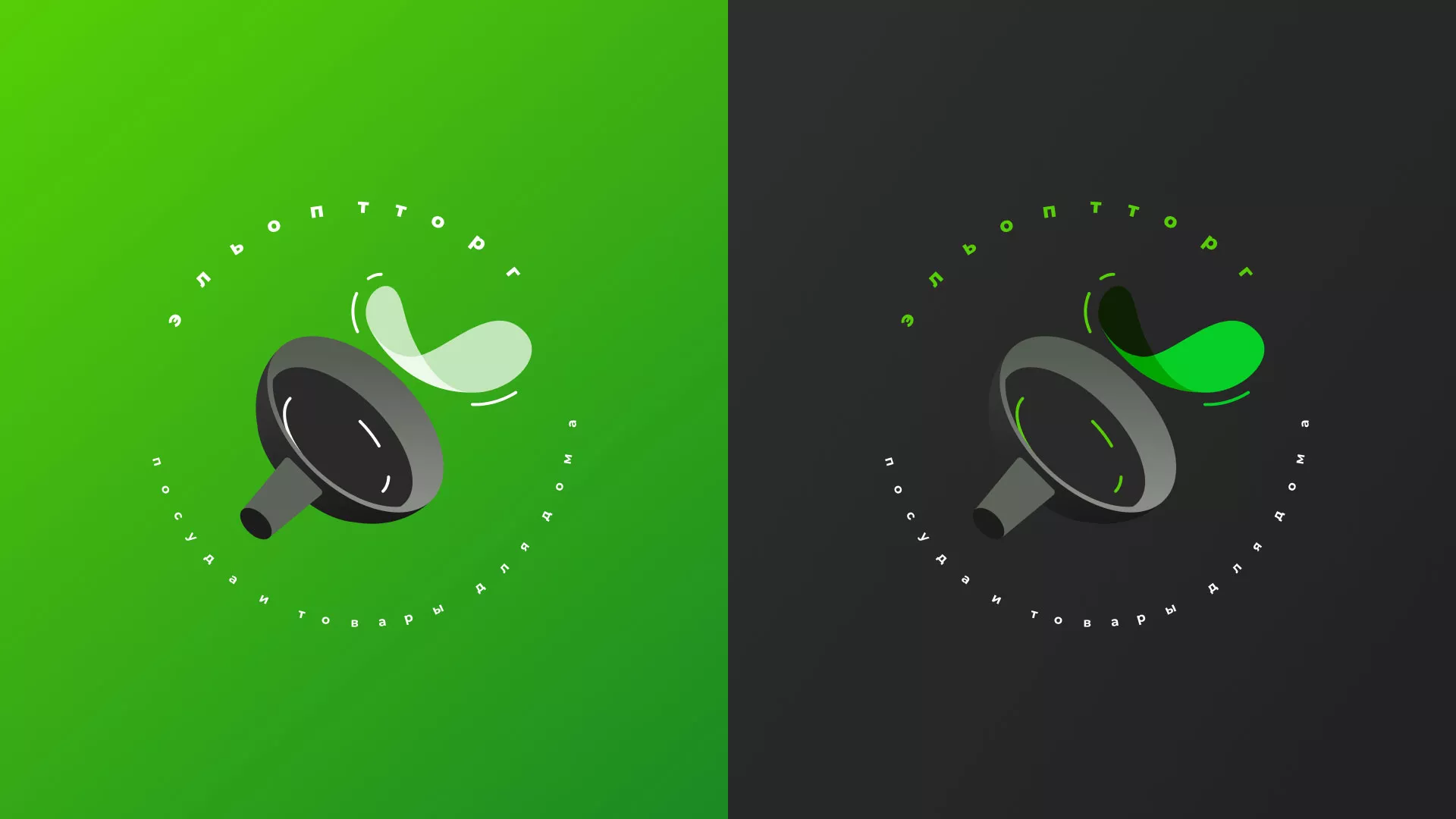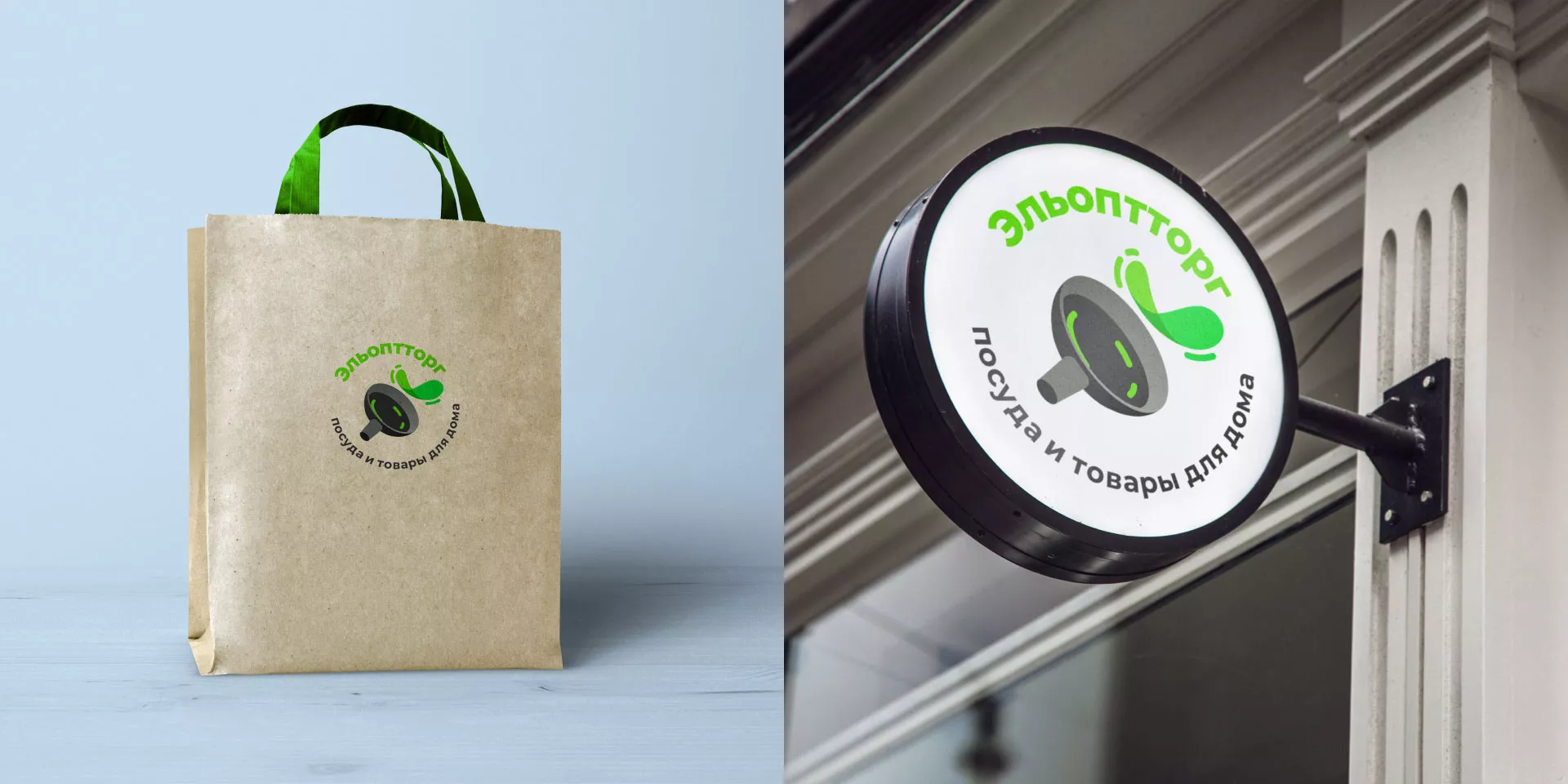 Четвертый вариант логотипа для компании «Эльоптторг» в Тотьме. Логотип представляет из себя динамичное изображение сковороды и процесса готовки. Круговая надпись дополняет рисунок и делает логотип более читаемым и понятным.
