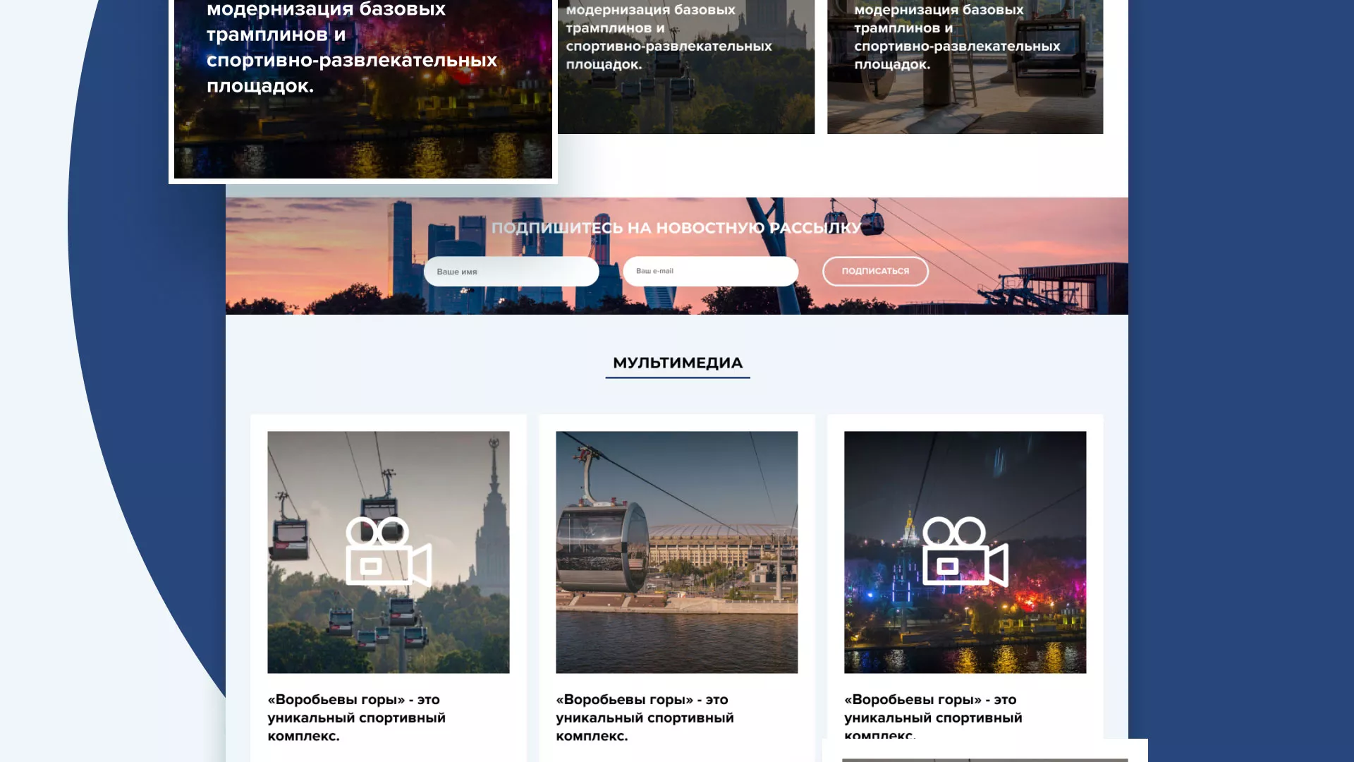 Разработка официального сайта в Тотьме для спортивно-развлекательного комплекса «Воробьёвы горы».